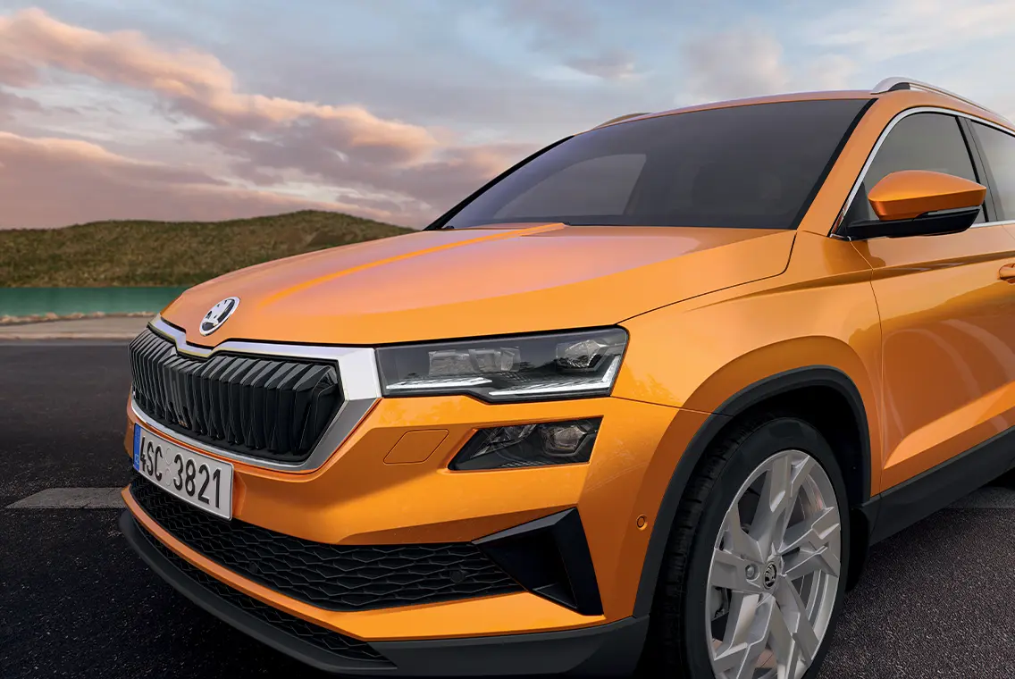 Škoda Karoq se vyznačuje dokonalou souhrou robustního vzhledu a dynamických křivek, díky nimž je zcela nepřehlédnutelná. Výrazný „čtyřoký“ design světlometů s funkcí Matrix v sobě nezapře přináležitost k SUV značky Škoda.