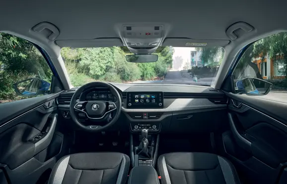 Prostorný interiér modelu Scala potěší skvělým zpracováním, kvalitními materiály a ergonomickým rozvržením ovládacích prvků. Samozřejmostí je pak plejáda praktických řešení Simply Clever. Na výběr je ze čtyř provedení interiéru, která se liší barevnými kombinacemi a materiály. S modernizací byly také nahrazeny základní analogové ukazatele za virtuální kokpit mini 8", přičemž větší virtuální kokpit 10,25" je dostupný na přání.