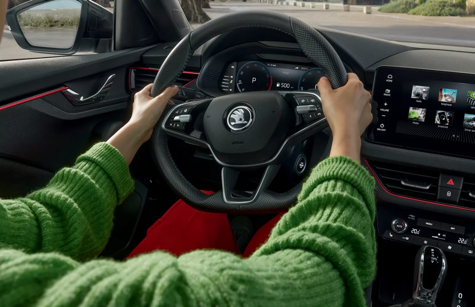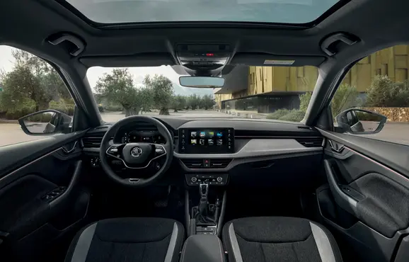 Prostorný interiér modelu Kamiq potěší skvělým zpracováním, kvalitními materiály a ergonomickým rozvržením ovládacích prvků. Samozřejmostí je pak plejáda praktických řešení Simply Clever. Na výběr je ze čtyř provedení interiéru, která se liší barevnými kombinacemi a materiály. S modernizací byly také nahrazeny základní analogové ukazatele za virtuální kokpit mini 8", přičemž větší virtuální kokpit 10,25" je dostupný na přání.