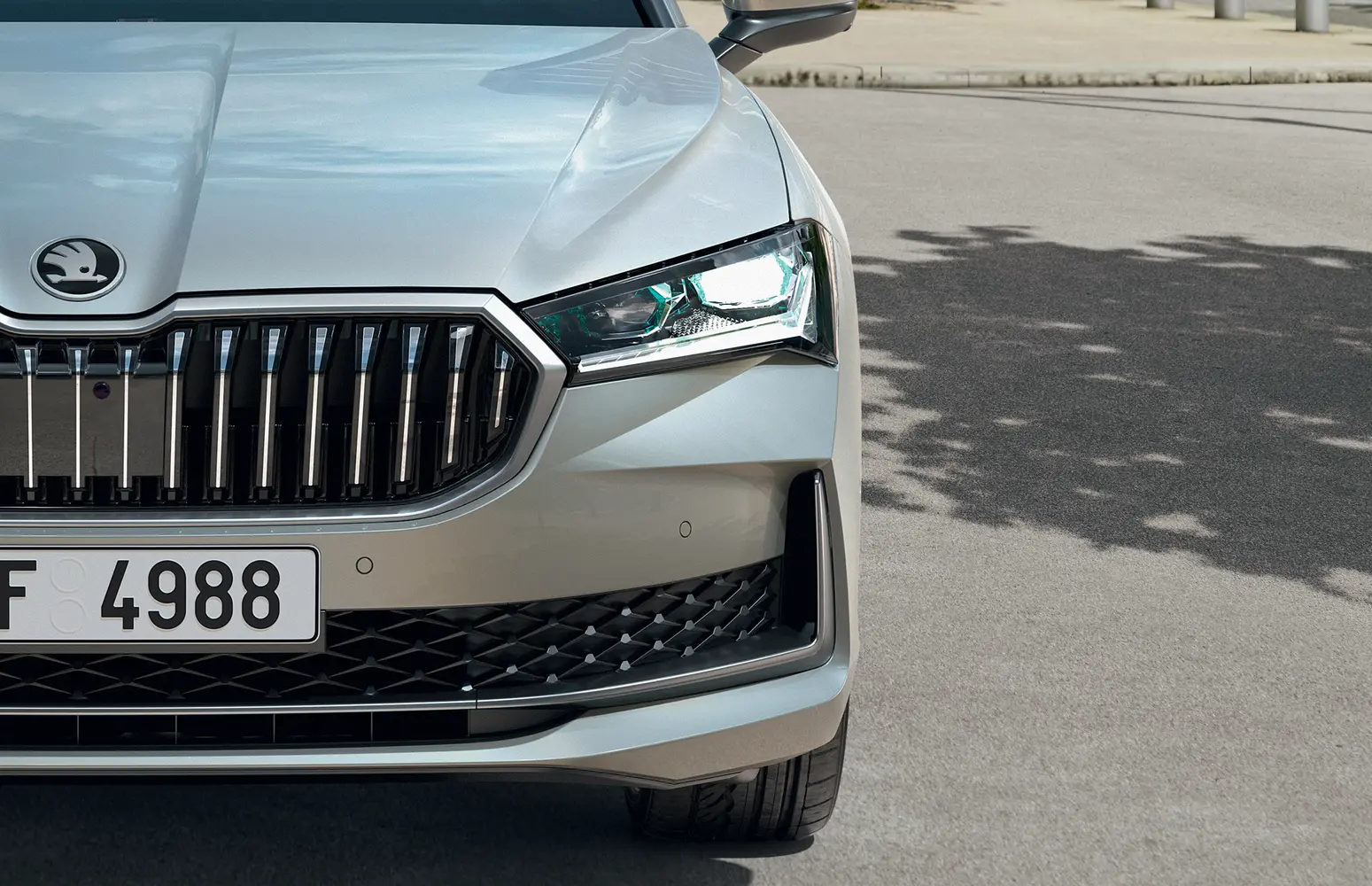 Superb působí sebevědomým a elegantním dojmem, na čemž má zásluhu mimo jiné výrazně tvarovaná kapota nebo tenké přední světlomety. Zatímco příď vozu zdobí Matrix-LED přední světlomety druhé generace, zádi dominují Top LED zadní světla, která jsou výrazně protažená do pátých dveří. Pro Superb jsou k dispozici výhradně kola z lehké slitiny, a to ve velikostech od 17“ do 19“.