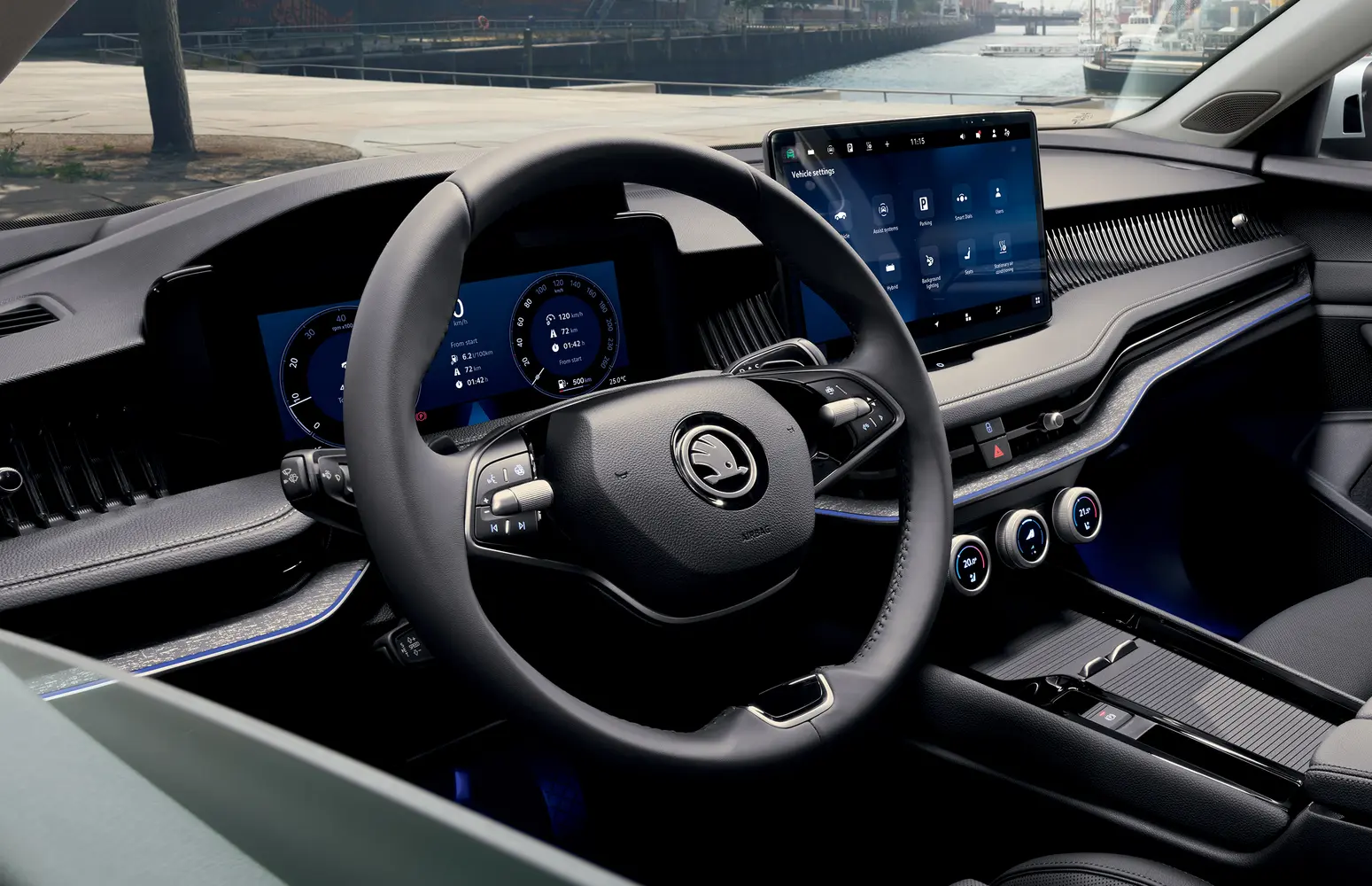 Superb nabízí moderní prvky, jako jsou již zmiňované Matrix-LED přední světlomety druhé generace nebo adaptivní podvozek DCC+ pro ještě komfortnější jízdu. V interiéru naleznete head-up displej, infotainment Navi s 13” displejem, Top ergonomická přední sedadla s certifikací AGR a masážní funkcí nebo rychlé bezdrátové nabíjení telefonu (15 W) s chlazením. O vaši bezpečnost se pak postará celá řada nových asistenčních systémů.