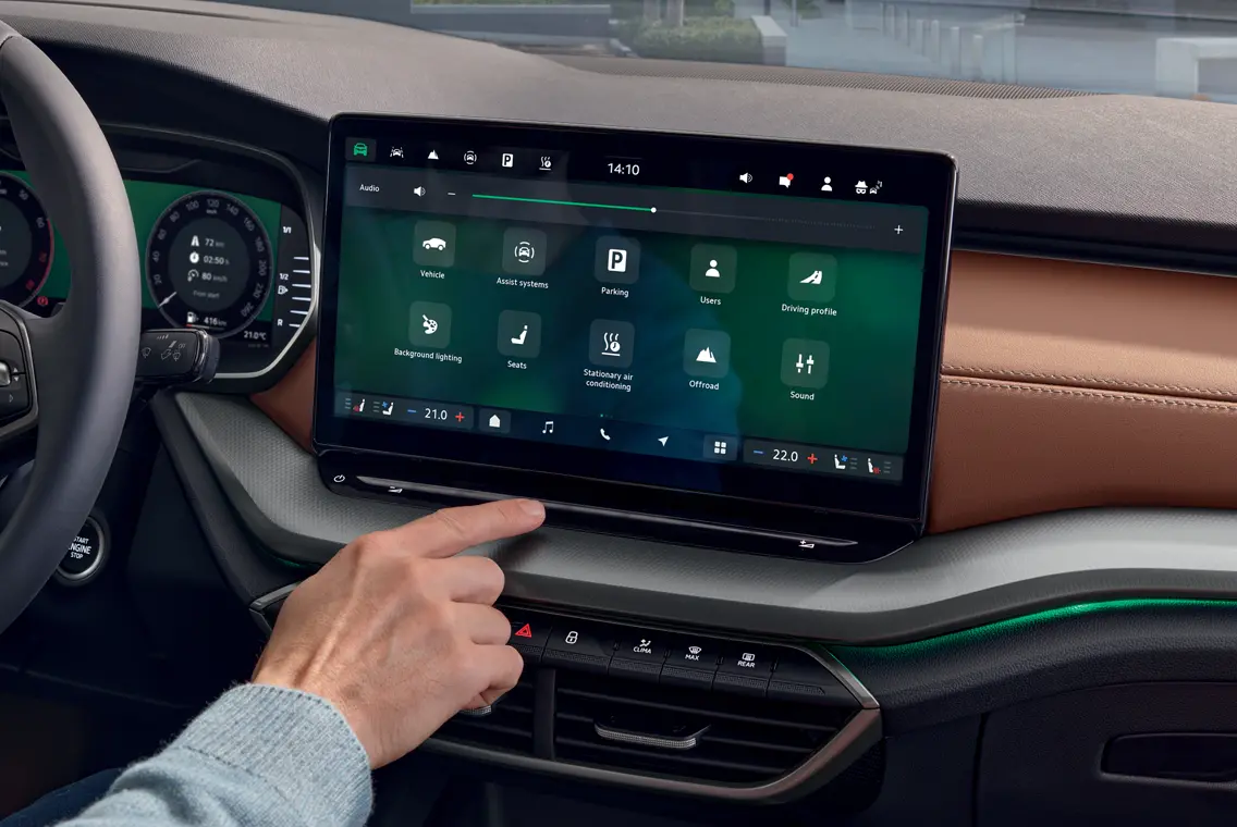 Model Octavia vám nabízí velkorysý prostor i bohatou výbavu v interiéru. Již ve standardní výbavě vozu naleznete dvouzónovou klimatizaci Climatronic nebo 10" virtuální kokpit mini. Na přání si můžete interiér vybavit například ambientním LED osvětlením nebo infotainmentem Navi 13".