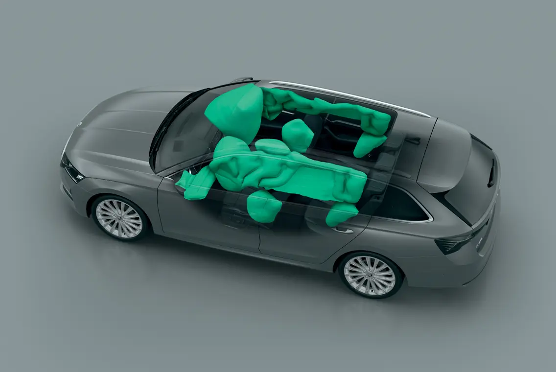 Octavia Combi může být vybavena až 10 airbagy a nabízí celou řadu moderních asistentů, které se postarají o bezpečí i pohodlí celé posádky. Patří mezi ně například Front Assist, asistent udržování jízdního pruhu, systém pro rozpoznání únavy a pozornosti řidiče, asistent pro jízdu s přívěsem nebo rozpoznávání dopravních značek.