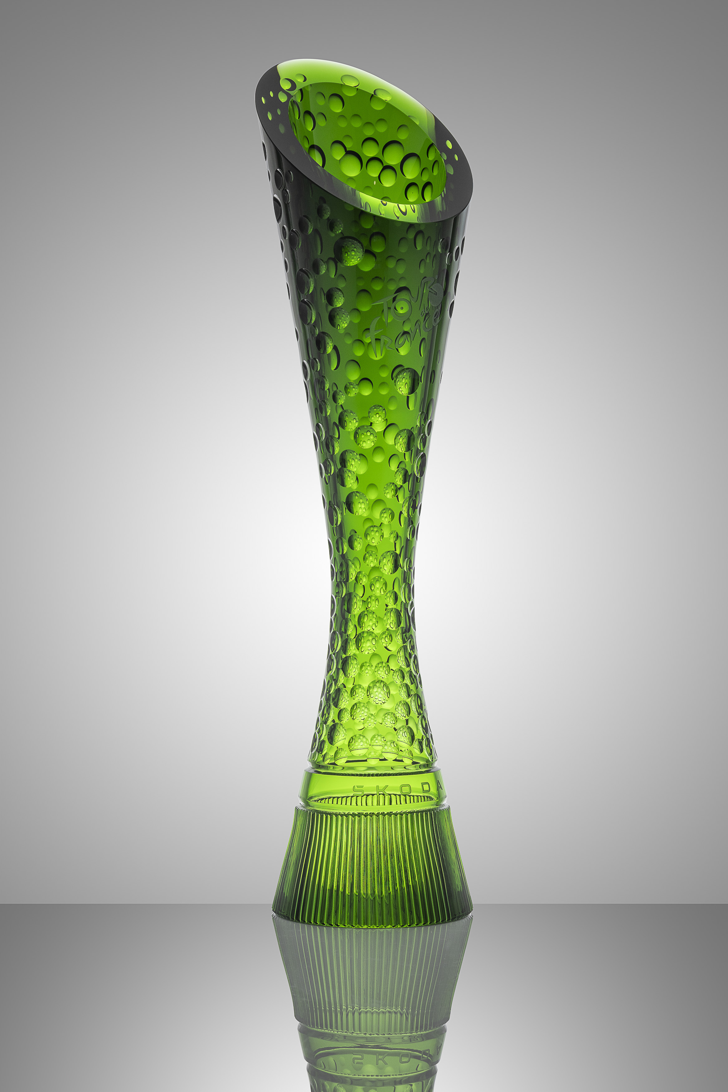 › Škoda Auto sponzoruje zelený trikot pro vedoucí jezdkyni bodovací soutěže a oddělení Škoda Design je autorem designu zelené křišťálové trofeje