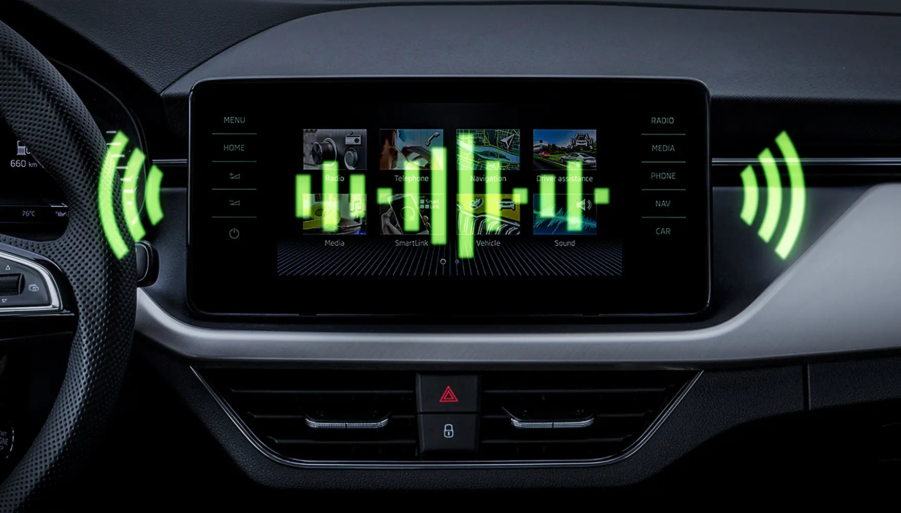 V budoucnu bude vůz ovládán hlasovými příkazy. Mnoho řidičů však tuto technologii již dnes používá a ovládá některé funkce vozu pouze hlasem. Digitální hlasový asistent Škoda se jmenuje Laura a rozumí plynulým větám. Chcete-li začít plnit vaše přání, jednoduše ji kontaktujte: „Dobře, Laura!“ Laura bude brzy k dispozici také na webových stránkách Škoda, kde vám pomůže s orientací a základními úkoly. Ovládání pouze hlasem je dostupné pro infotainment Bolero a vyšší (u modelů Fabia, Scala a Kamiq jen s navigací).