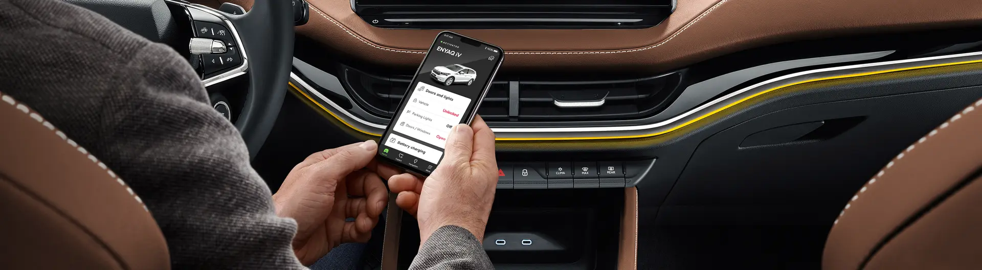 Pokrývá různé funkce pro váš elektrický vůz Škoda Enyaq iV. Můžete ovládat nebo plánovat proces klimatizace (vytápění a chlazení), nabíjet baterii na dálku prostřednictvím mobilní aplikace.